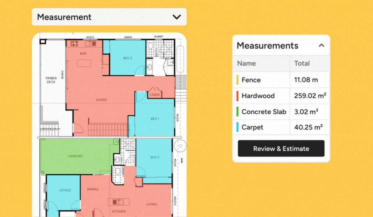 Our simple tool lets you quickly and accurately measure and mark-up plans on screen in minutes, then turn them into estimates.