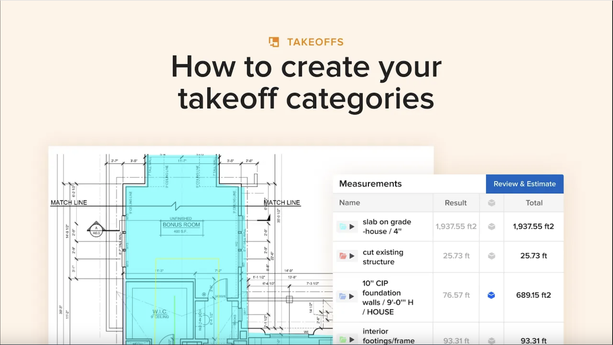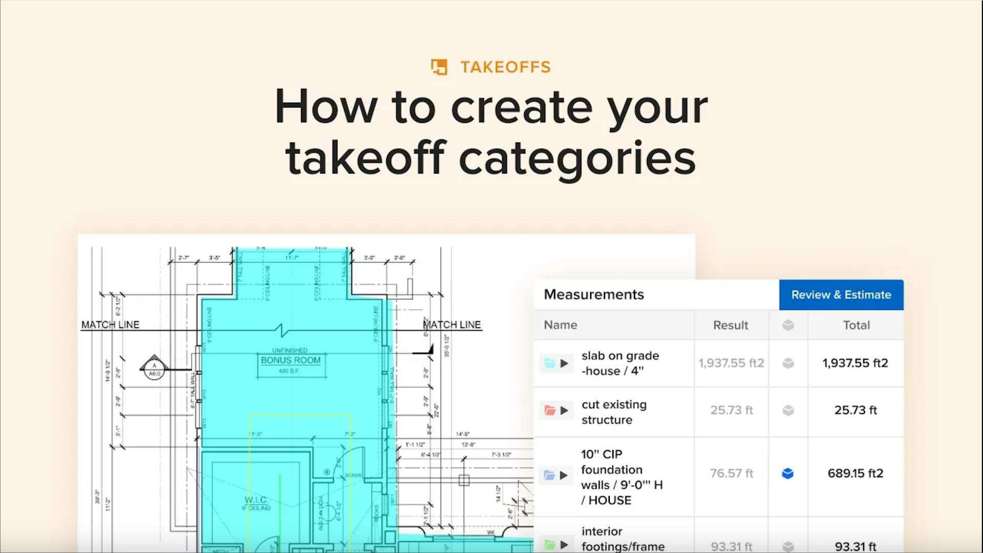 Construction pros: use takeoffs to build your estimates quickly and accurately.