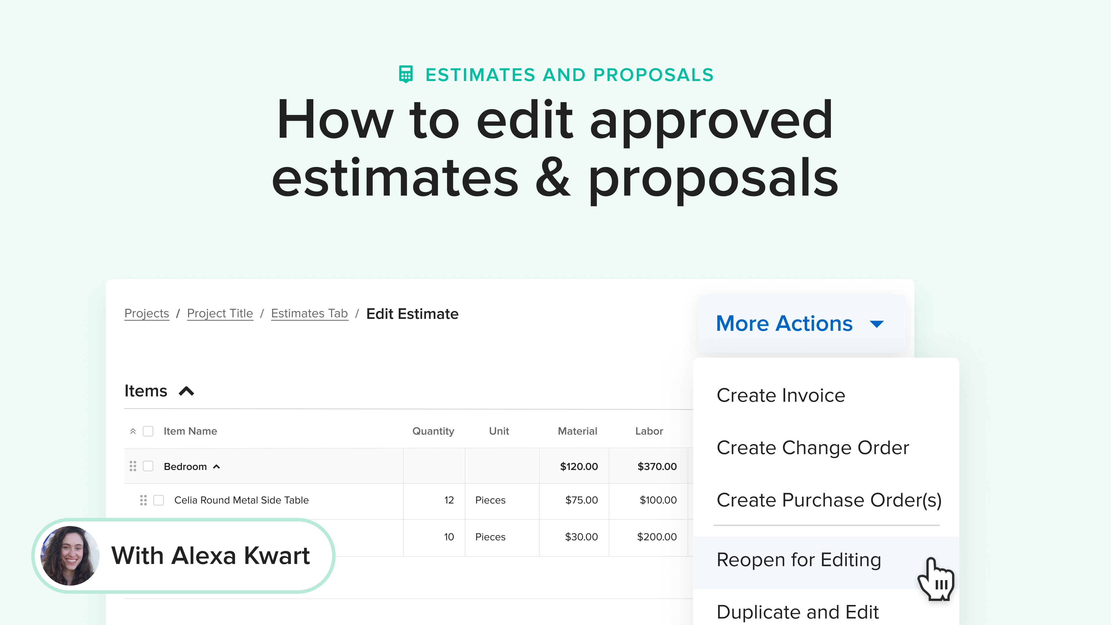 Create and send professional, accurate estimates, proposals, and change orders. You can easily include product images and descriptions, and your clients will be able to review and approve everything online.