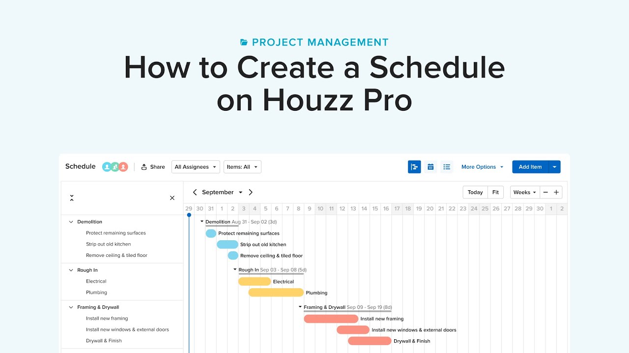 Creating and maintaining an up-to-date project schedule is one of the most effective ways to assure that a job stays on track and on budget. With Houzz Pro management software, the Schedule tool is at the heart of the project management ecosystem. It is your virtual assistant that ensures you don't miss a beat on any project.