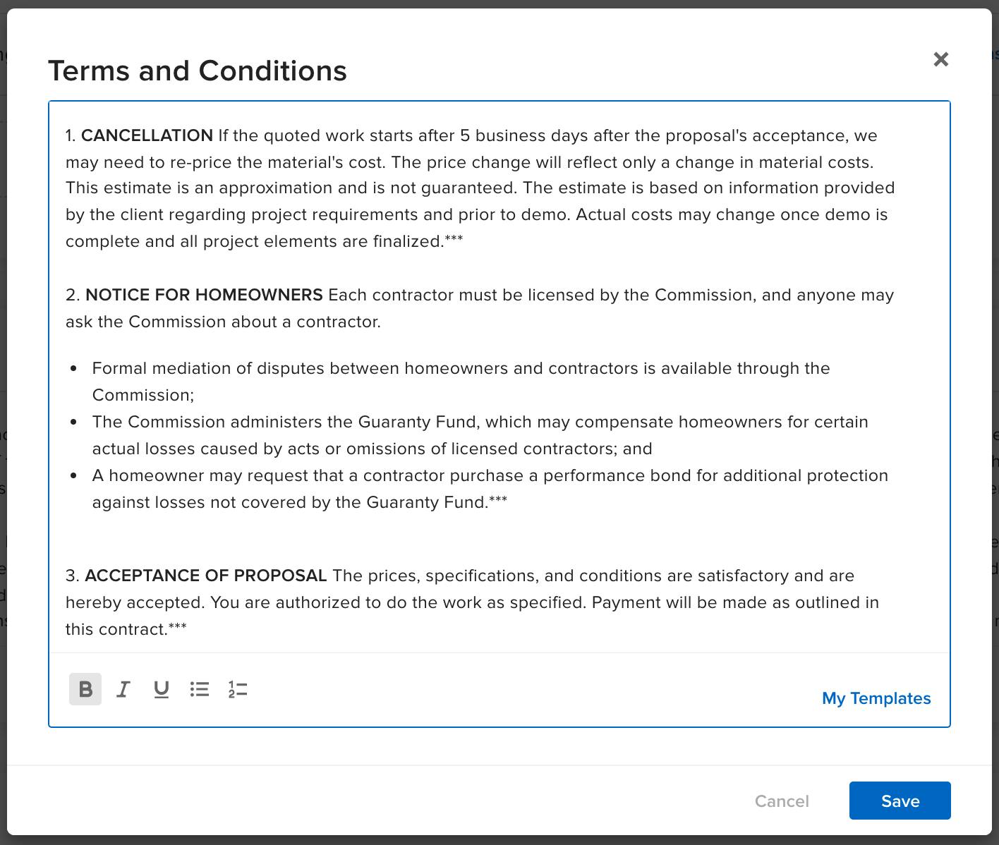 2. Make your Terms & Conditions and Memos appear exactly how you want with our new formatting capabilities. You can now format them with bold, italic, and underlined text, plus add headings or bulleted and numbered lists.